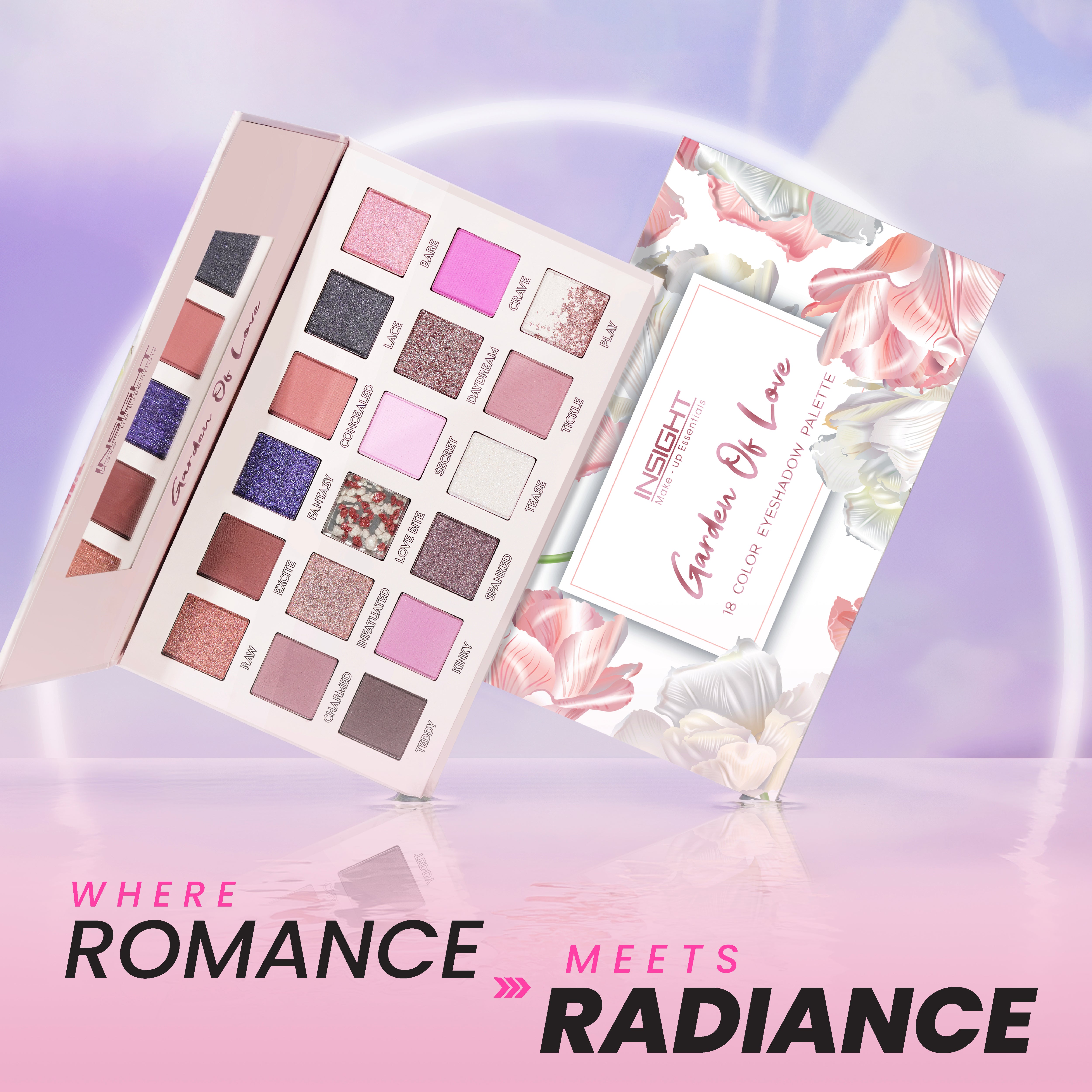 Discover the magic of the Insight Garden of Love eyeshadow palette, featuring 18 stunning shades for endless mesmerizing looks. With 9 shimmer shades-2 high shine metallic, 4 soft shimmers, and 3 multi-shimmers-Your eyes will dazzle. From soft, romantic daytime looks to bold, glamorous nighttime vibes, the Garden of Love palette empowers you to express yourself and glow your own way.