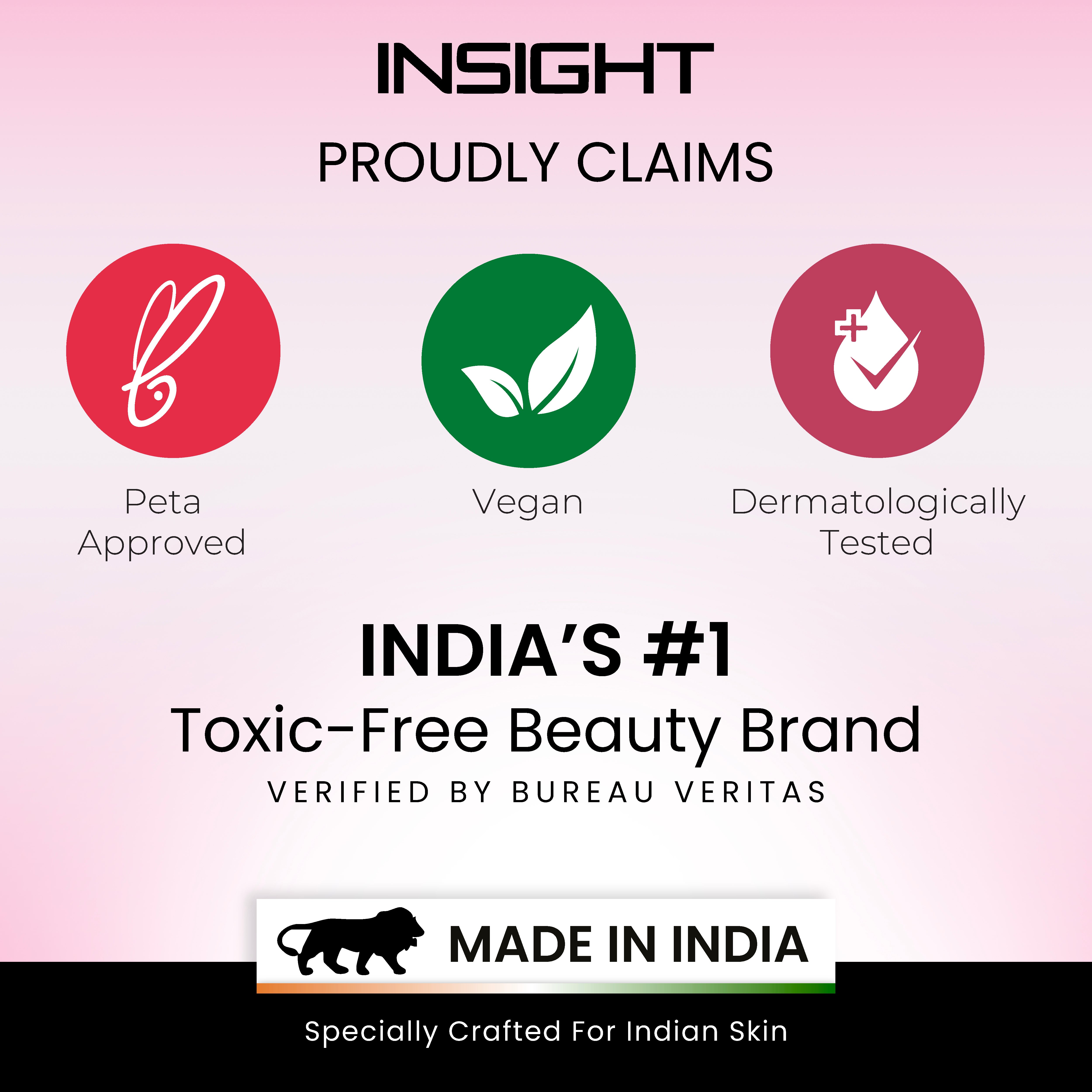 Insight cosmetics products are certified safe by bureau veritas as safe cert, dermatologically and Ophthalmology tested, VEGAN, PETA, FDA