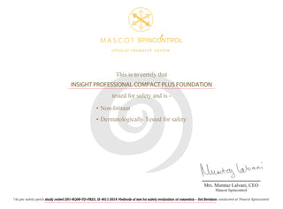 Insight cosmetics products are certified safe by bureau veritas as safe cert, dermatologically and Ophthalmology tested, VEGAN, PETA, FDA