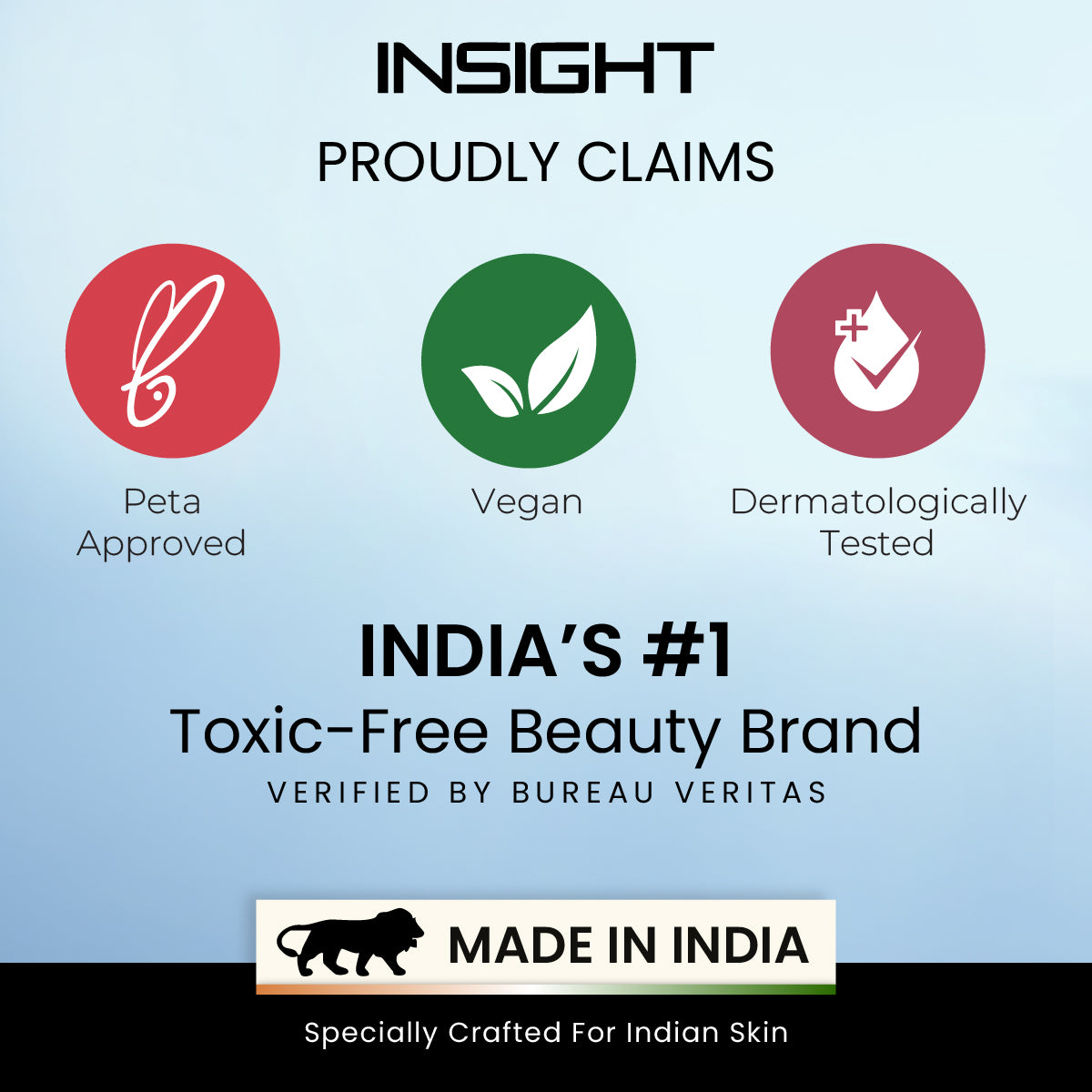 Insight cosmetics products are certified safe by bureau veritas as safe cert, dermatologically and Ophthalmology tested, VEGAN, PETA, FDA