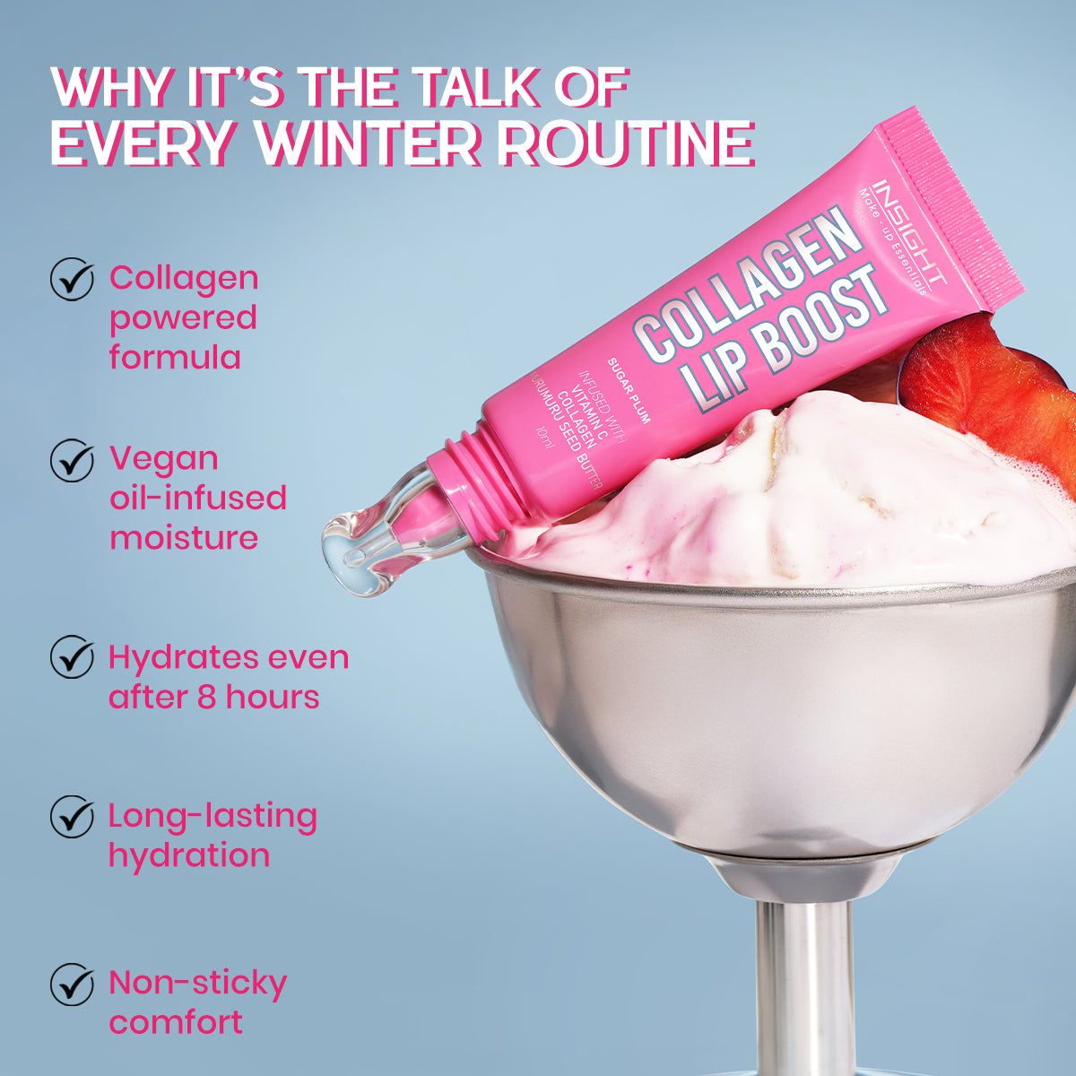 - Insight Collagen Lip Boost leaves a glassy non sticky finish on the lips