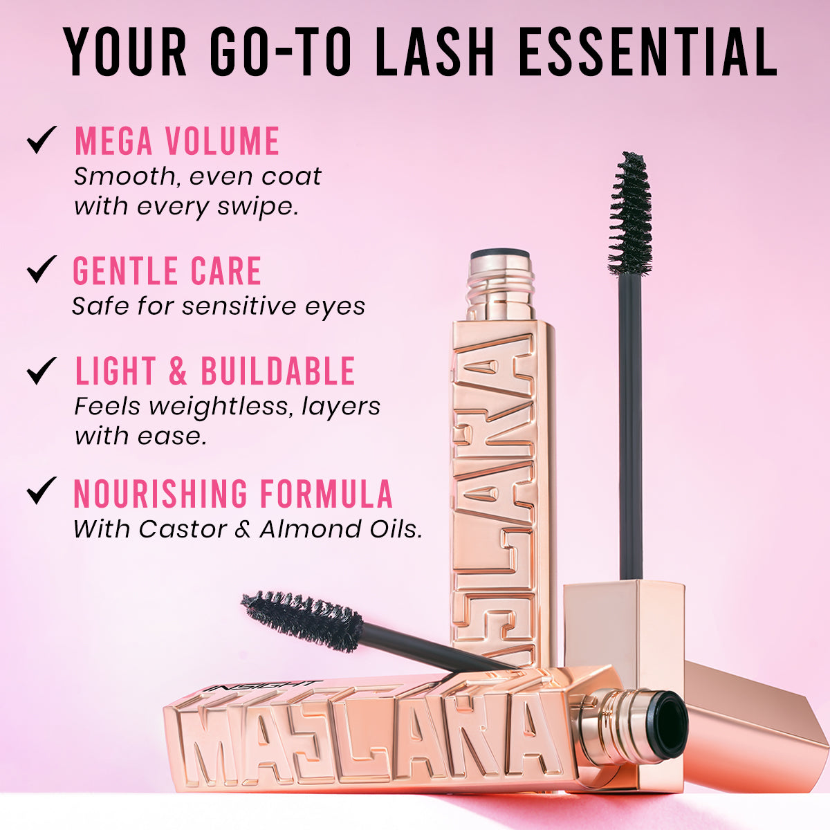 - Intense, smooth glide, weightless, and buildable lashes.