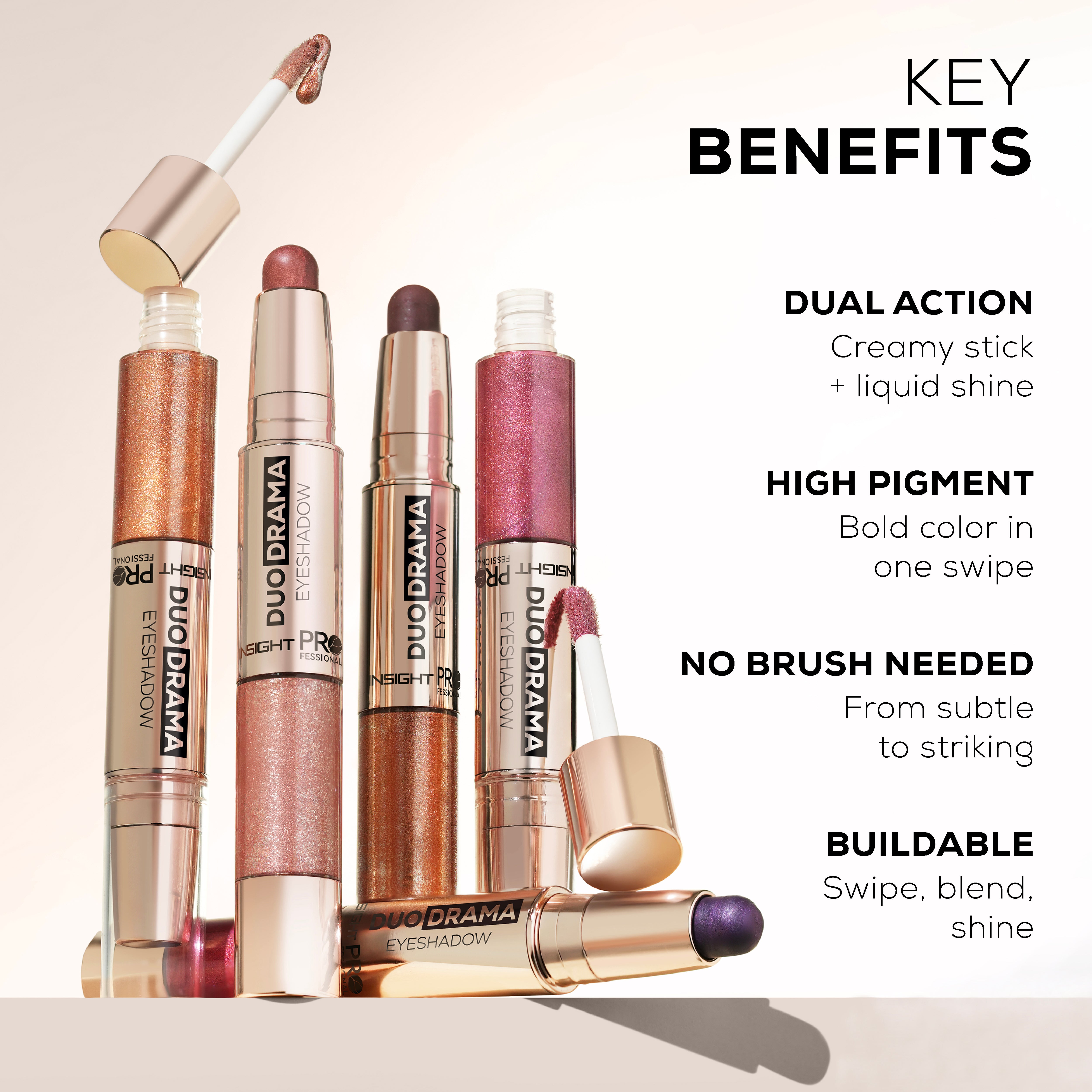 From everyday elegance to night-out glam, this versatile duo has you covered in just a few swipes! It is a 2-in-1 Stick & Liquid Eyeshadow, designed for effortless application and maximum impact. One side features a creamy, blendable eyeshadow stick for smooth, precise application, while the other side boasts a high-impact liquid eyeshadow for a bold, dazzling Finish. Use them separately for subtle or statement looks, or layer them together for ultimate dimension and drama!