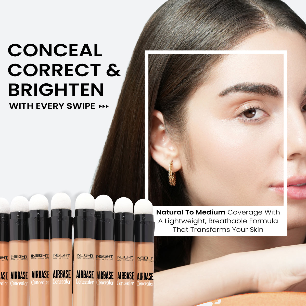 Effortlessly conceal imperfections with Insight’s Air Base Concealer, a must-have for flawless, natural-looking skin. Its lightweight formula blends seamlessly, delivering medium coverage that effectively hides dark circles, blemishes, and redness without feeling heavy or cakey. Designed to resist creasing, it ensures a smooth, long-lasting finish that stays fresh throughout the day. The innovative cushion tip applicator makes it incredibly easy to use, providing precise and mess-free application for a perfect look every time. Whether you are at home or on the go, this concealer is your ultimate tool for a naturally perfected look. Twist and swipe to instantly conceal and correct.