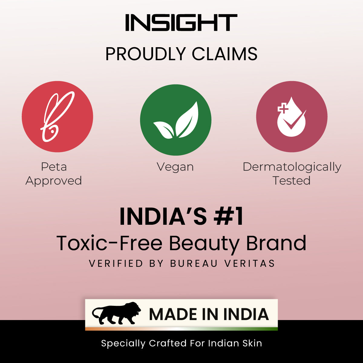 Insight cosmetics products are certified safe by bureau veritas as safe cert, dermatologically and Ophthalmology tested, VEGAN, PETA, FDA