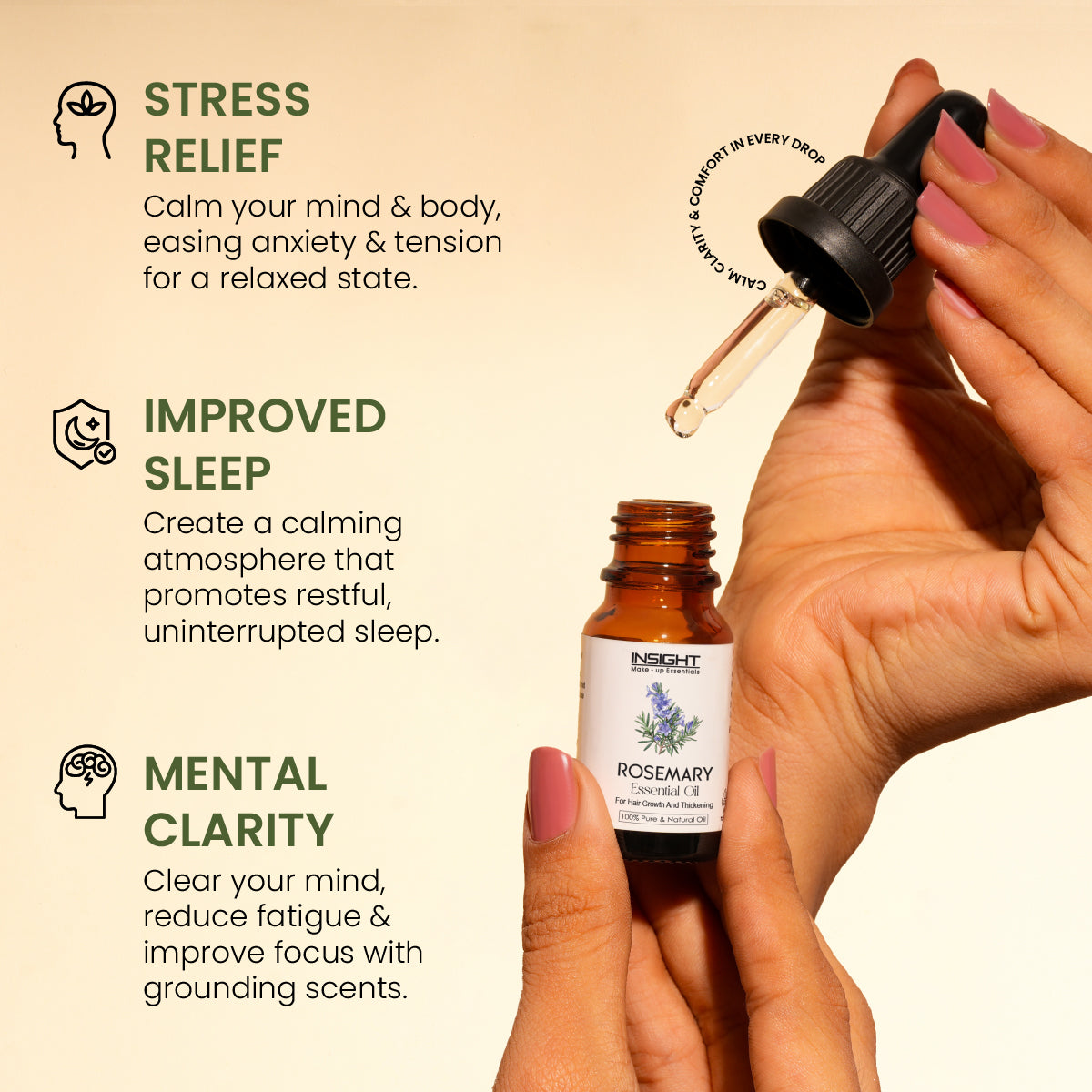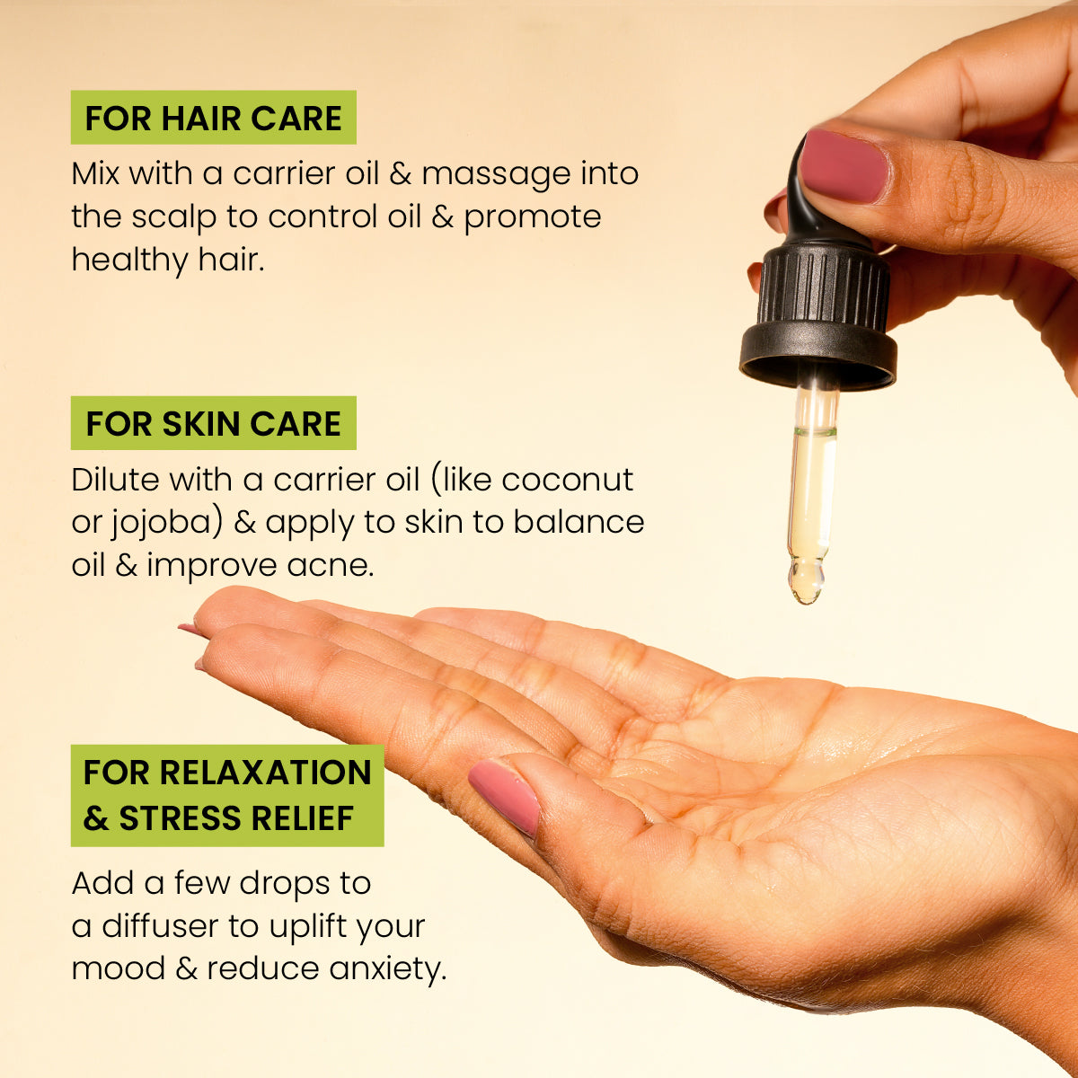 Tea Tree Essential Oil is renowned for its purifying and anti-inflammatory properties. It effectively soothes scalp irritation, reduces hair fall, and helps combat dandruff. Additionally, it unclogs pores, which reduces acne breakouts and promotes clearer, healthier-looking skin.Benefits :
