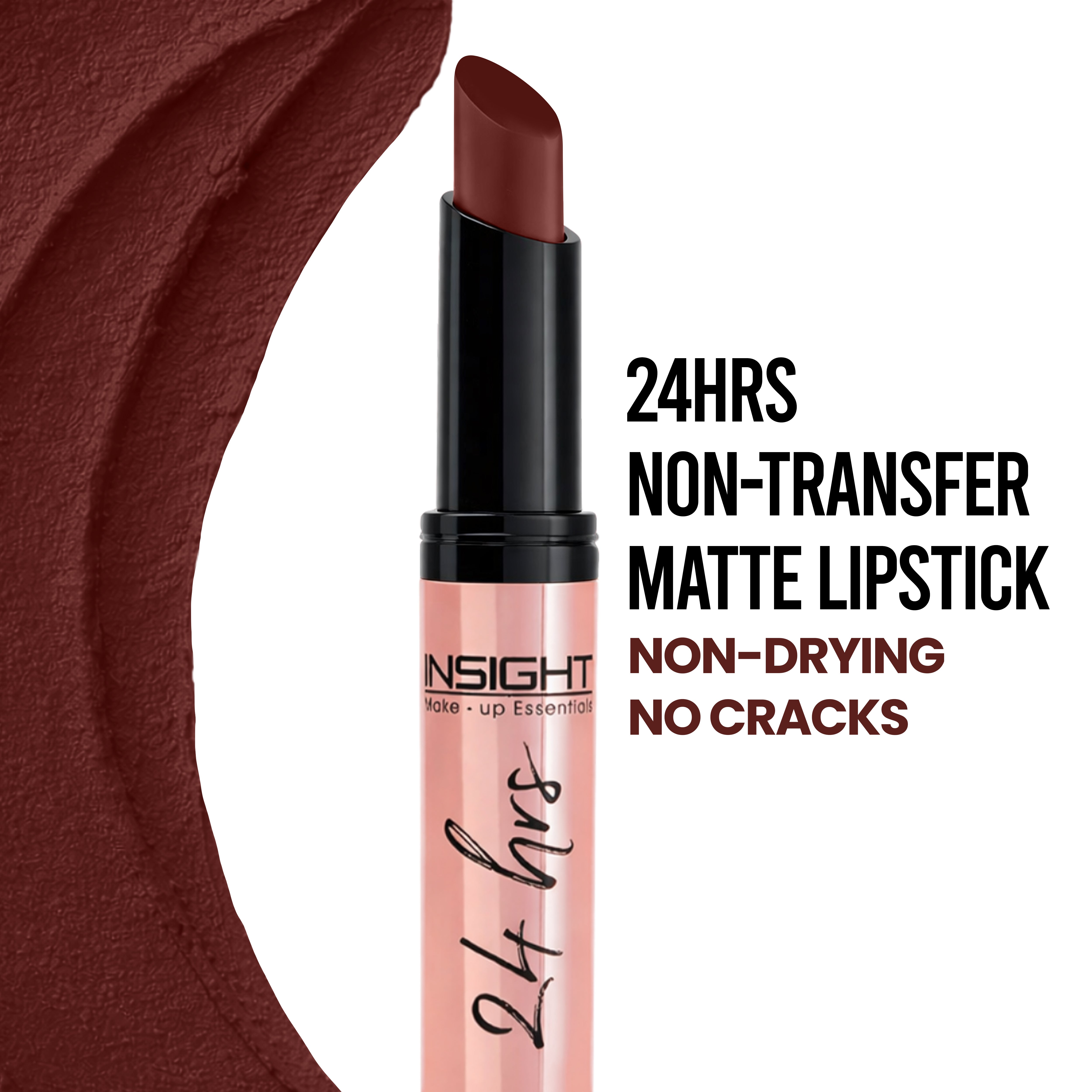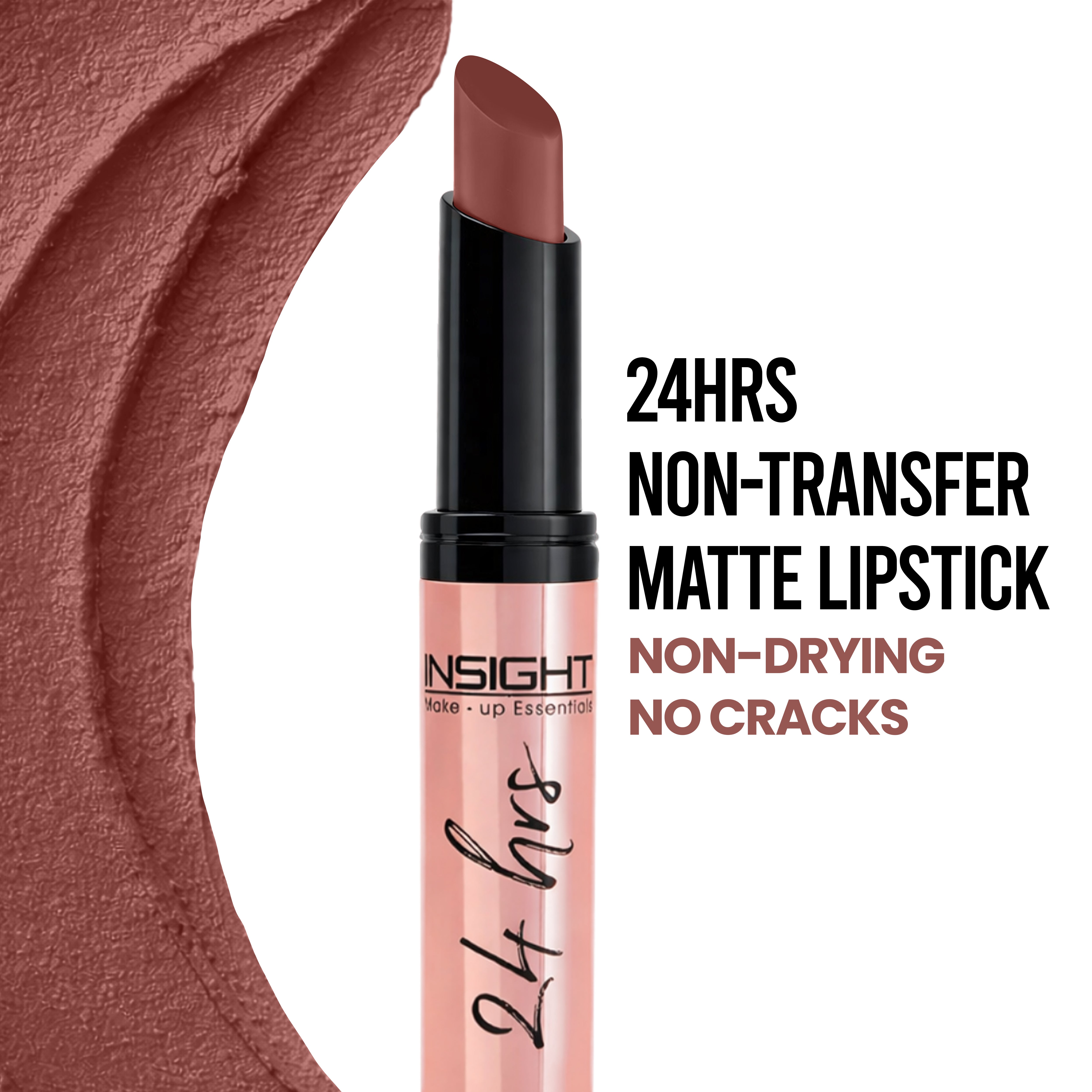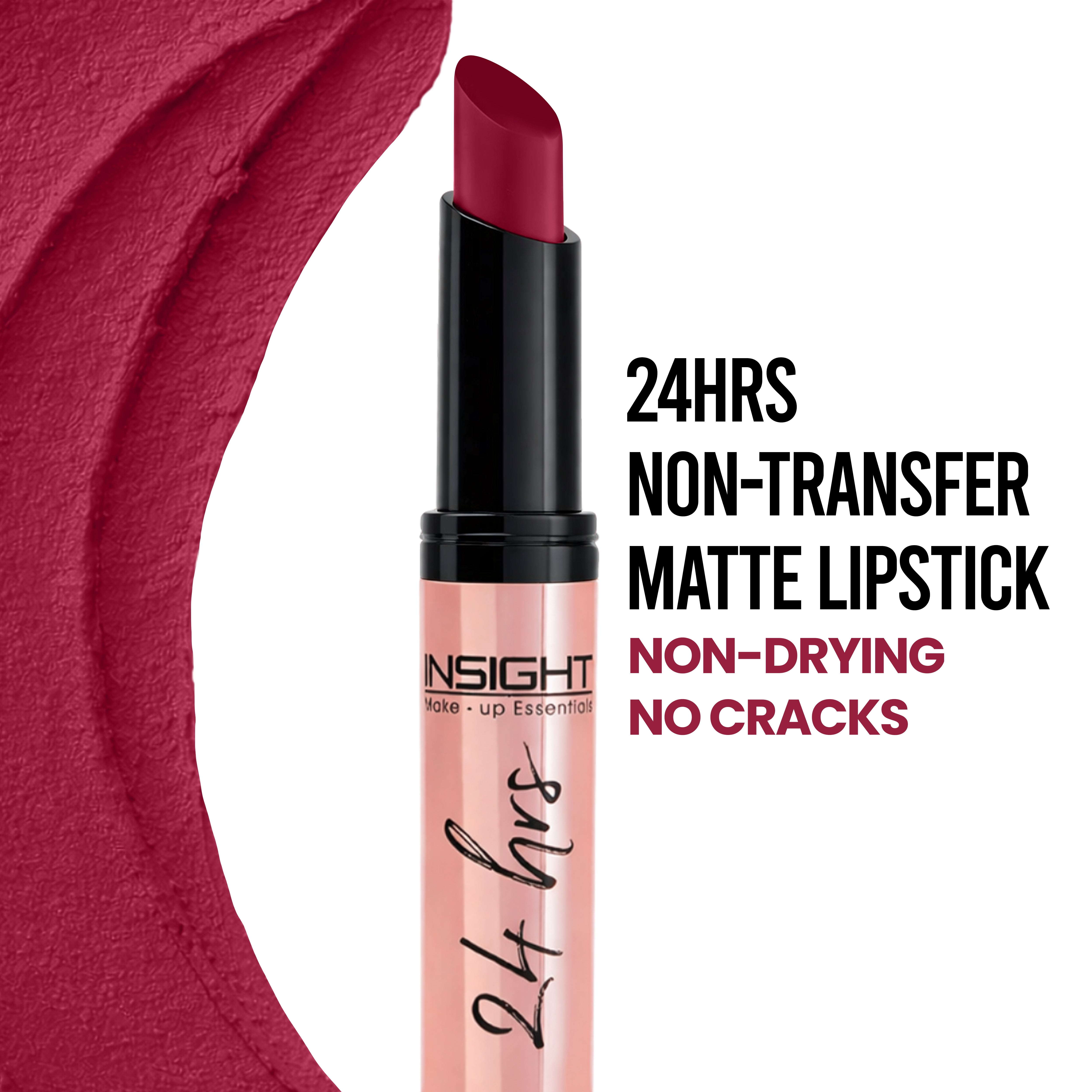 Insight Cosmetics 24 Hrs Non-Transfer Matte Lipstick gives you intense color payoff with a smudge-proof, ultra-matte finish. Lightweight, comfortable, and long-lasting—stay flawless all day without touch-ups!
